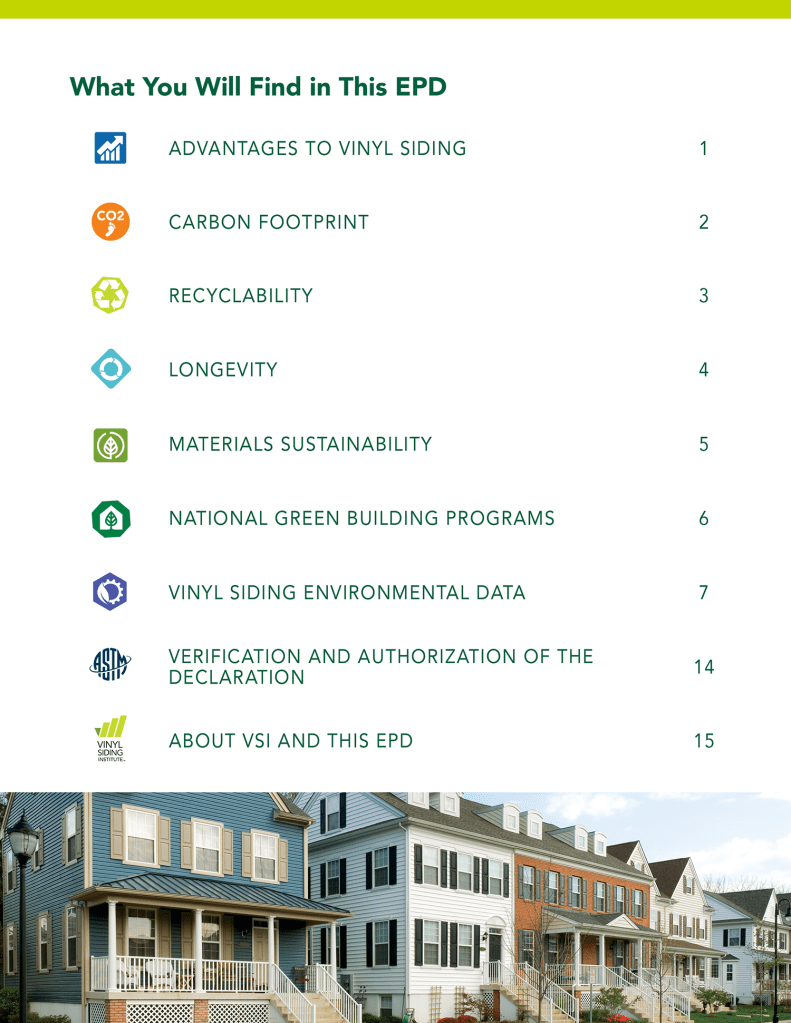 VSGD worked closely with VSI Communications staff and members to design and produce three EPD marketing brochures to educate architects, builders, and consumers about the environmental benefits of vinyl. These brochures were designed to be viewed online as pdf files with hyperlinks and also with the possibility of the brochures being printed sometime in the future.