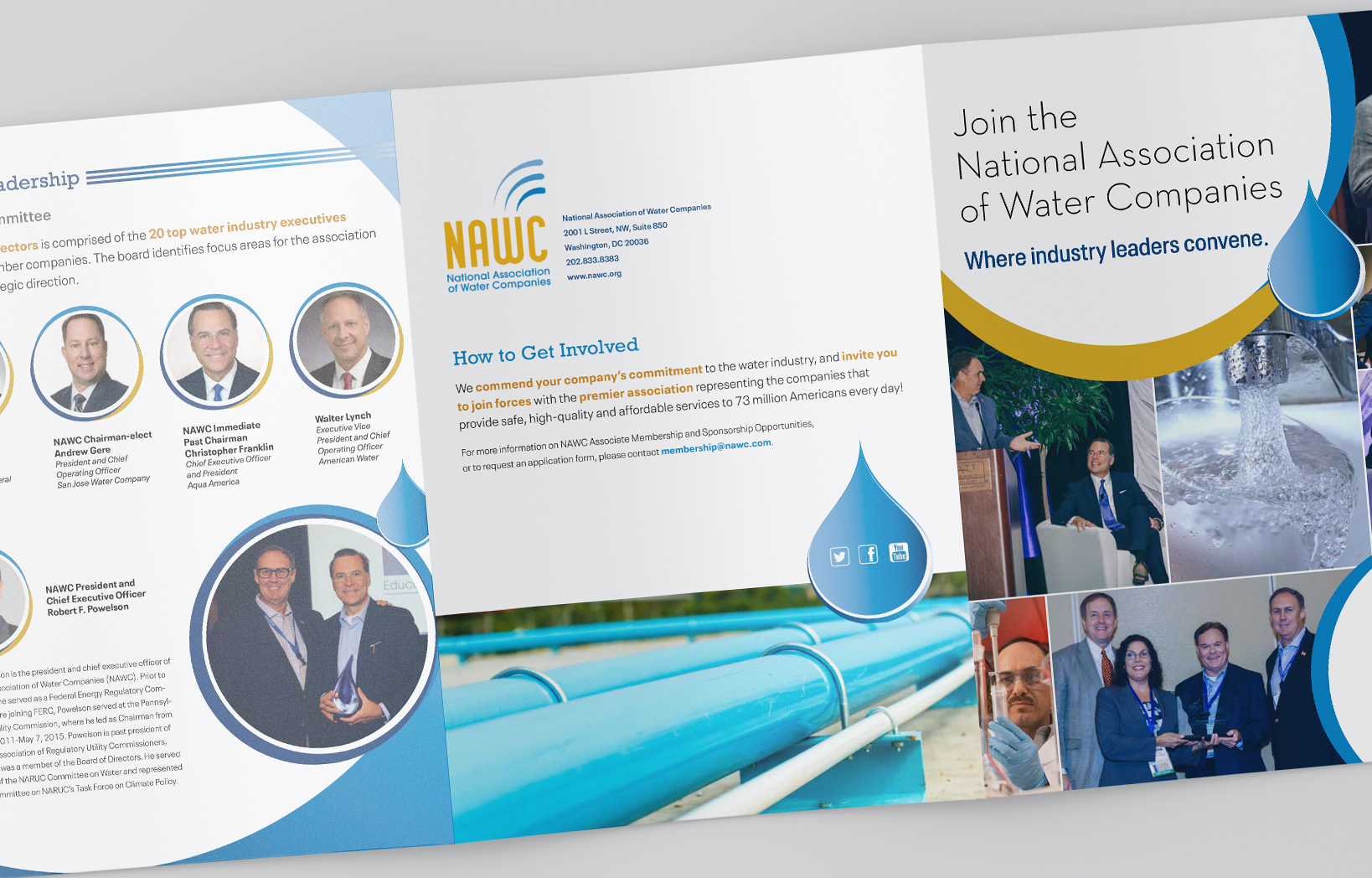 National Association of Water Companies Associate Membership Brochure VSGD designed a new eye-catching look using colorful photos, interesting graphics, and clean typography treatments. Share this: Click to share on LinkedIn (Opens in new window) LinkedIn Related
